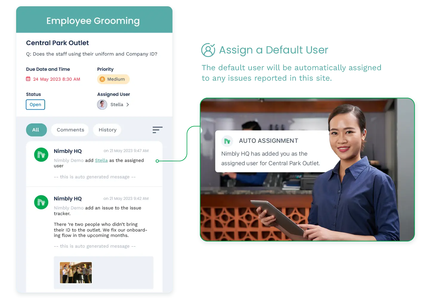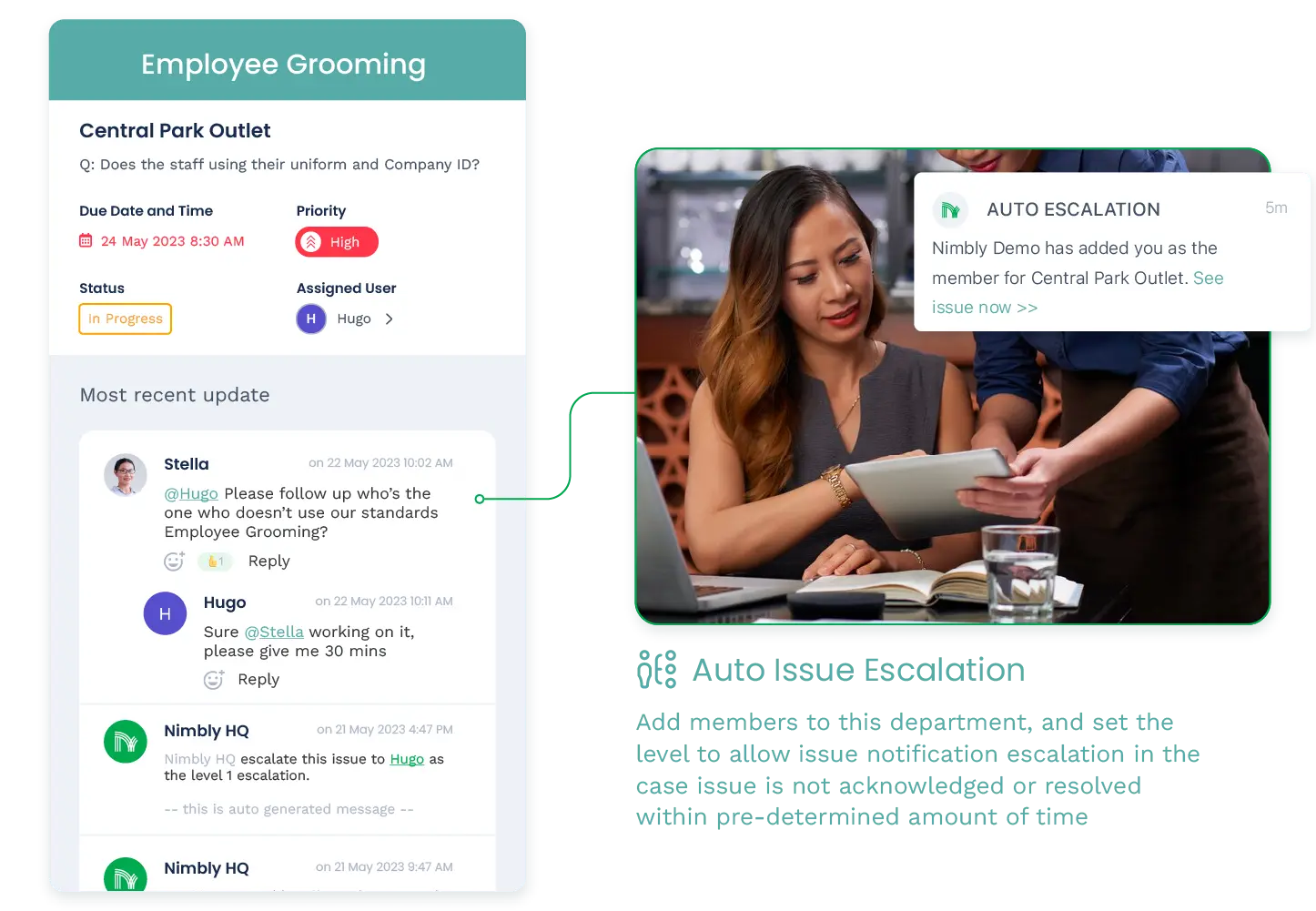 Effortlessly manage issues across all departments and stores with Nimbly. Stay informed and in control with real-time updates and a user-friendly issue timeline.