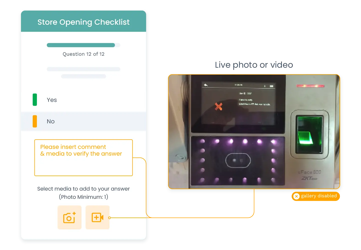 Be confident in your employees' reports with Nimbly's geo-fencing feature. Validate their work with live selfies and attach photos and videos as evidence.